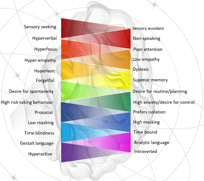 The spectrum of neurodiversity is an innovative model that depicts the diversity in presentation of human neurotypes and enables mapping of individual brains to understand a person’s unique presentation of neurodiversity.